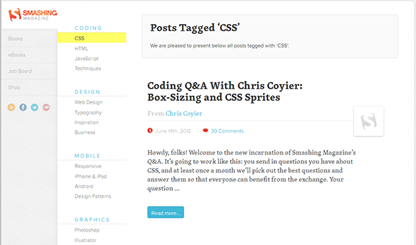 4. Smashing Coding— на этом сайте эксперты и специалисты дают советы, показывают интересные приемы использования css.