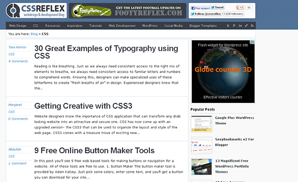 13. Cssreflex - вдохновляющие примеры использование css, уроки, статьи, а также обзоры полезных инструментов и сервисов.