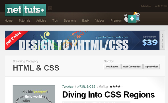 3. Nettuts+ — сайт для веб-разработчиков. Очень много полезных уроков по html и css как для новичков, так и для опытных верстальщиков.