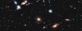 Используемое изображение — Ха́ббл-Экстри́м-Дип-Филд (англ. Hubble eXtreme Deep Field, сокр. XDF) детальный снимок длительной экспозиции, содержащий более 2000 фотографий небольшого участка пространства в центре Hubble Ultra Deep Field в созвездии Печь, созданный на основе данных, полученных телескопом «Хаббл». Так как при рассматривании удаленных частей вселенной видно то, что происходило очень давно, на этой фотографии видны около 5500 галактик, самая далекая из которых удалена от нас на 13,2 млрд световых лет, самая молодая галактика, запечатлённая на снимке, образовалась всего через 450 млн лет после Большого взрыва.