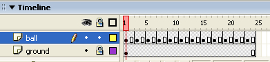 Теперь настало время оживить наш мяч. Направляемся к первому кадру на шкале и выбираем мяч. Получаем следующее: