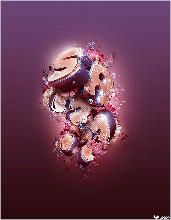 3D шрифты в розово-фиолетовых оттенках в работе marcinxp