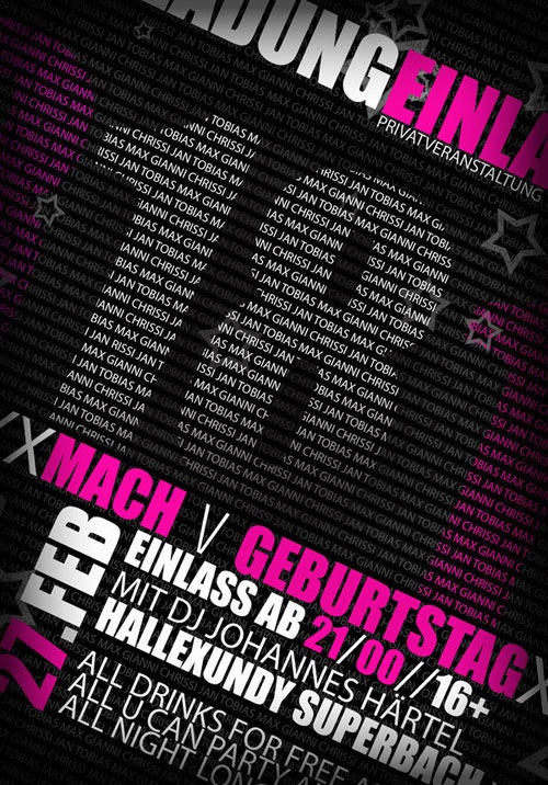 В этой подборке вы сможете увидеть 30 примеров того, как могут выглядеть флаера для различных вечеринок. Надеемся, эти работы станут полезными для начинающих дизайнеров и смогут вдохновить вас. Для того чтобы узнать о создателе заинтересовавшей вас работы, кликните на ссылку над ней.