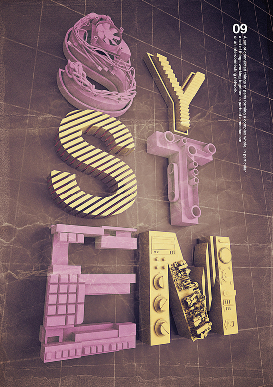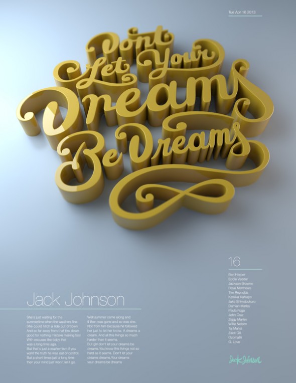 Очень сложной, но и, пожалуй, одной из самых привлекательных форм искусства является типографика. Всегда удивляло количество деталей и элементов, которые можно даже не заметить с первого раза. В этой подборке вы увидите примеры типографических работ, выполненных в стиле 3d. Для создание подобных работ нужны не только потрясающие навыки работы с 3d b 2d графикой, но и талант. Надеемся, что данная подборка вдохновит вас на создание своей работы, которая будет ни чуть не хуже, а возможно, даже и лучше.