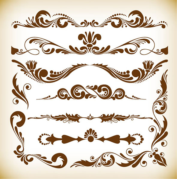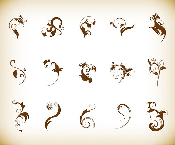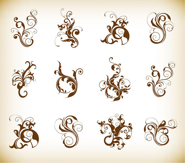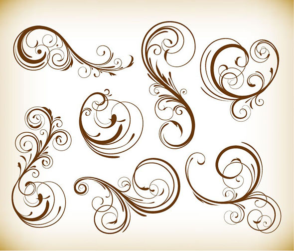 Decorative Swirl Floral Pattern Elements Vector Graphics Set