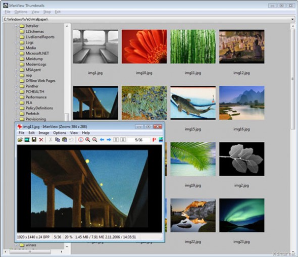 Один из популярнейших средств для просмотра изображений на Windows-системах. Шустрый, компактный, бесплатный. Умеет открывать всяческую графику, конвертировать ее в нужный формат, оптимизировать, создавать слайдшоу. Существуют плагины, скины и локализации. Часто противопоставляет себя ACDSee. Хотя, если честно, я у себя дома заменила его на FastStone Image Viewer, который также бесплатен для личного некоммерческого использования, но, на мой взгляд, гораздо удобнее, и умеет работать с NEF.