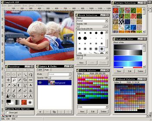 Или, если расшифровать, GNU Image Manipulation Program. В особом представлении, думаю, не нуждается. Бесплатно распространяется, имеет множество возможностей: может служить простым приложением для рисования, мощным средством фоторетуширования, конвертером форматов и др. Под GIMP написано множество уроков, кистей, тем и плагинов, посвящена масса сайтов. Вот наиболее популярные русскоязычные ресурсы: gimp.ru, progimp.ru и gimpinfo.ru.