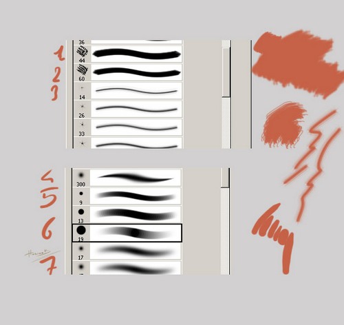 Детали будем добавлять с помощью кисти. В этой иллюстрации я использую лишь стандартные кисти Photoshop. Если хотите, можете загрузить другие и работать с ними. Настроим их для работы. Вот кисти, которые буду использовать я: