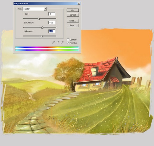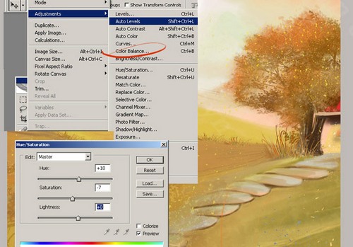 Вот что действительно важно. Подобрав соответствующий оттенок, вы можете изменить всю атмосферу иллюстрации. сейчас я изменяю цвета в Color Balance. Затем подправлю яркость и контрастность. Как видите, результат налицо.