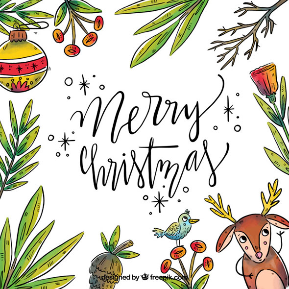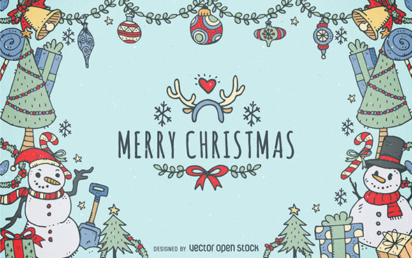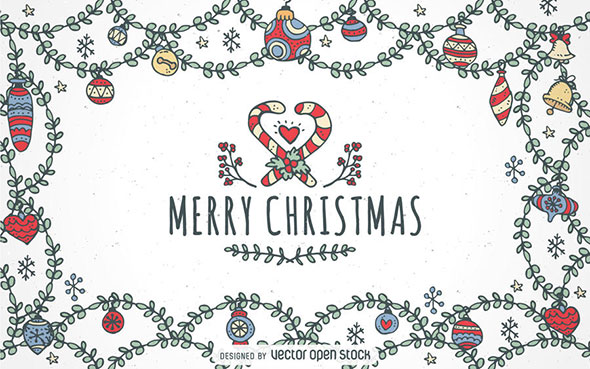 HAND DRAWN MERRY CHRISTMAS ORNAMENTS BACKGROUND