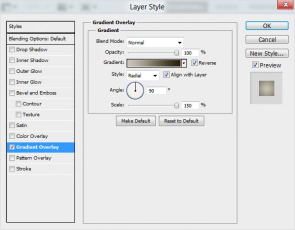 И добавляем серо-белый Gradient Overlay, немного уменьшив его размер:
