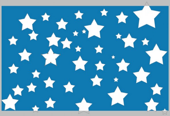 Нашлёпываем этих звездочек разного размера равномерно по синему фону. Сильно крупные не надо. Затем объедините слои фона и звездочек-форм — выберите оба слоя в панели слоев и нажмите CTRL+E. Или просто кликните по верхнему слою правой кнопкой и выберите Merge Down