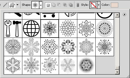 Подключите эти новые формы и в новом слое с помощью Custom Shape Tool нарисуйте красивые белые снежинки по всему фону.