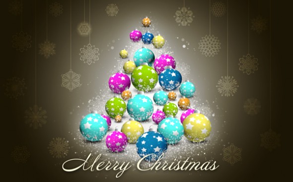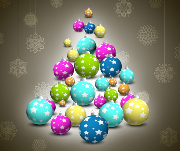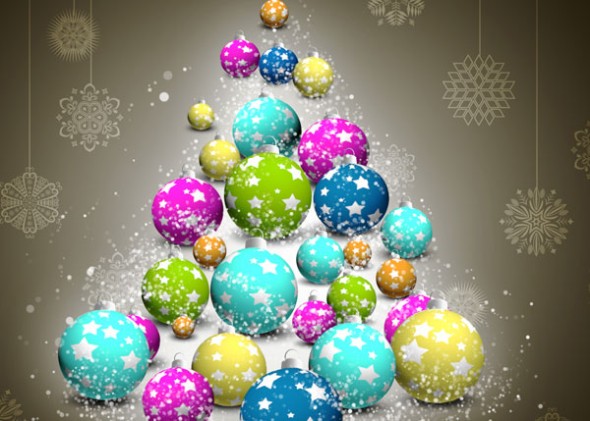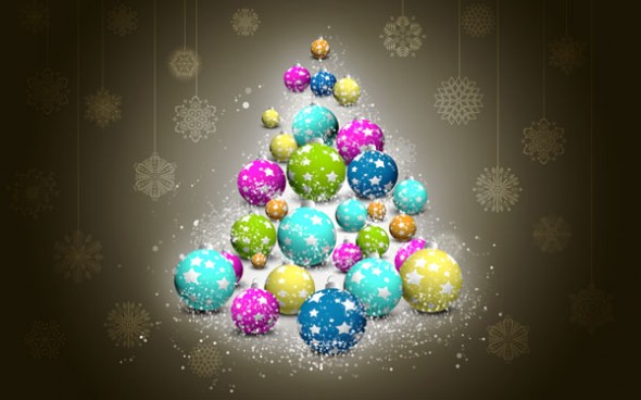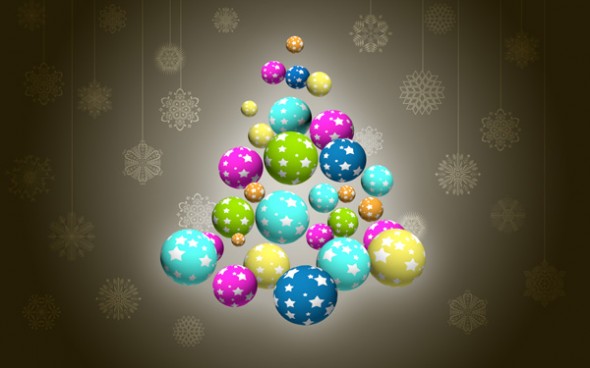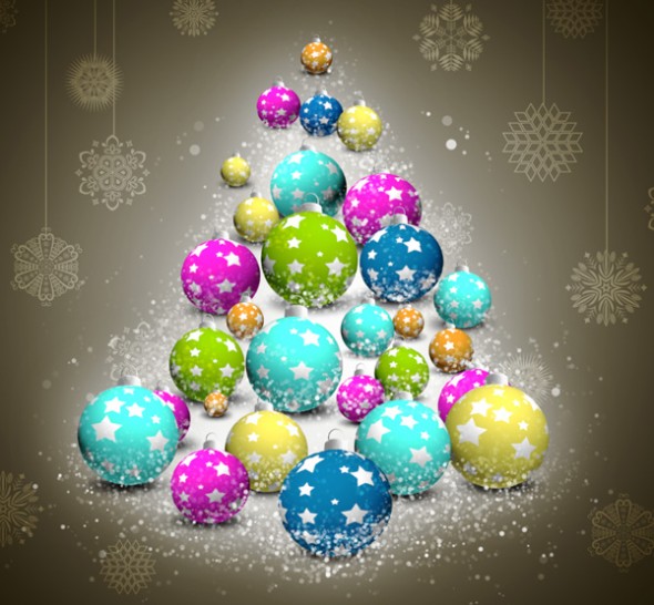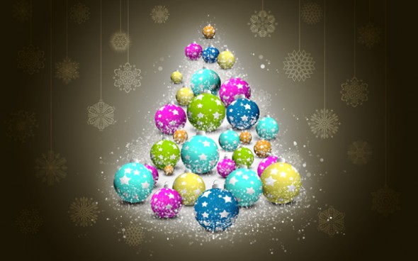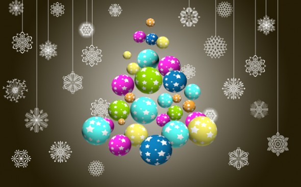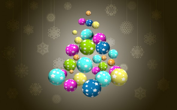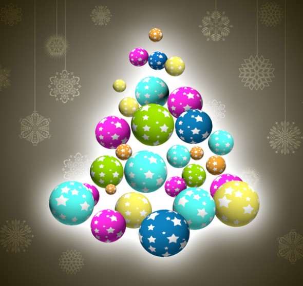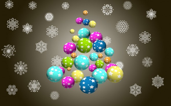 Слой со снежинками перенесите ниже всех слоев с шариками, пусть шарики их слегка перекрывают.