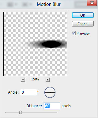 Тени следует быть нечеткой. Применяем к ней фильтр Motion blur (Filter — Blur — Motion blur):