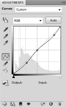 Добавим открытке праздничной яркости — с помощью корректирующего слоя ( Create new fill or adjustment layer — Curves, который расположим выше всех наших слоев и отрегулируем свет и тени: