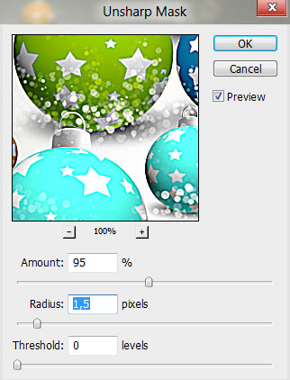 Дублируем все слои и объединяем дубликаты в один растровый слой (выделяем слои в панели, кликаем правой кнопкой — Merge Layers либо просто CTRL+E). Применяем к этому слою Filter — Sharpen — Unsharp Mask: