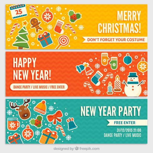 Colored christmas and new year banners