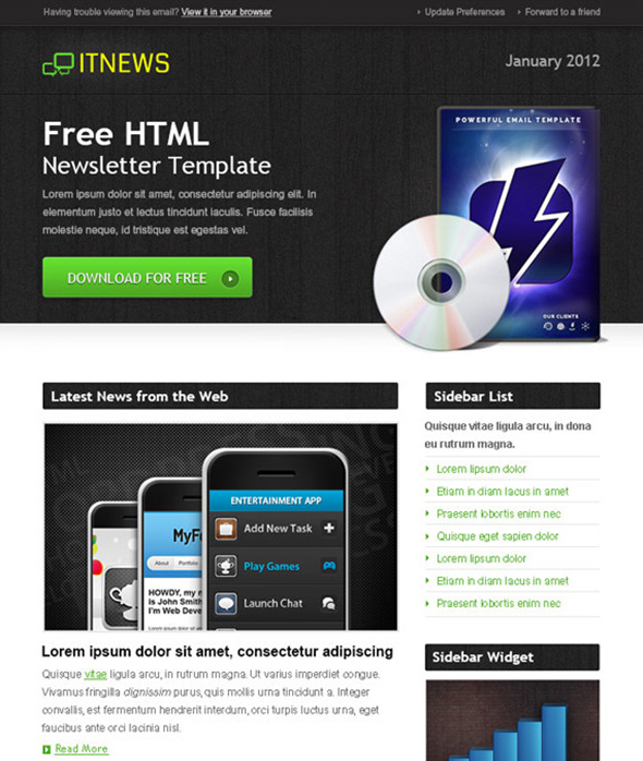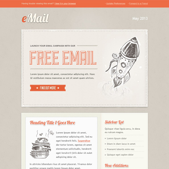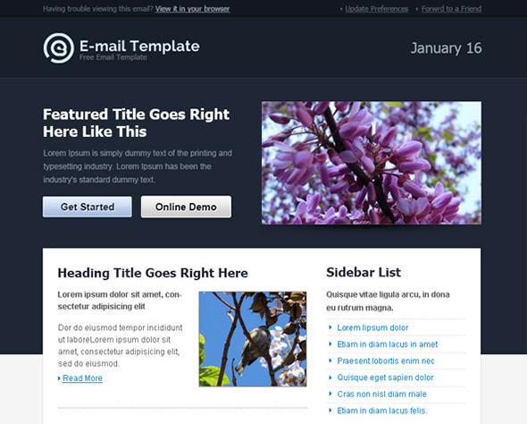Сегодняшняя подборка для тех, кто практикует рассылку на e-mail. Чтобы пользователю было проще, интереснее и понятнее воспринимать информацию, которую он получает от вас письмом, задумайтесь о том, как это письмо оформить. Мы собрали бесплатные шаблоны для e-mail'ов и делимся ими с вами. Выбирайте, настраивайте под себя и используйте!