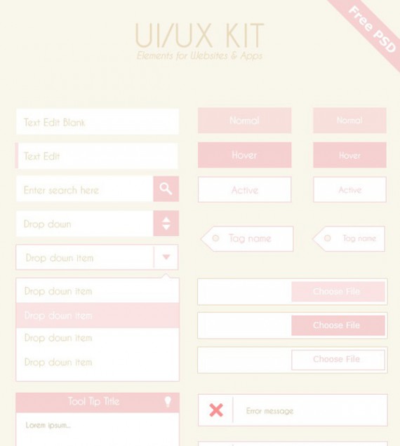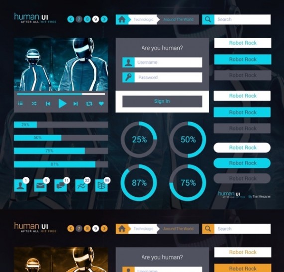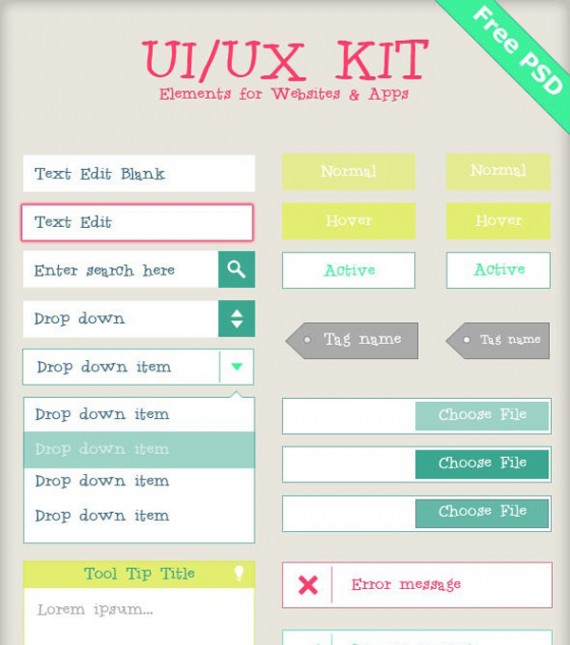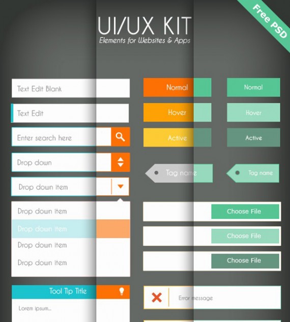 UI/UX Flat Design Kit – Neon Theme – FREE PSD