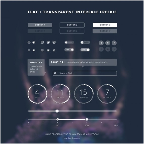 Вашему вниманию предлагается вторая часть бесплатных плоских UI-элементов для дизайнеров.