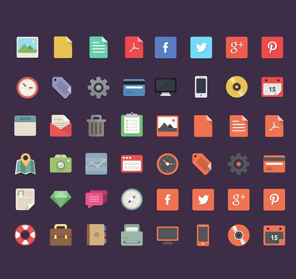 Flat 48 Office, Social and Travel Icons