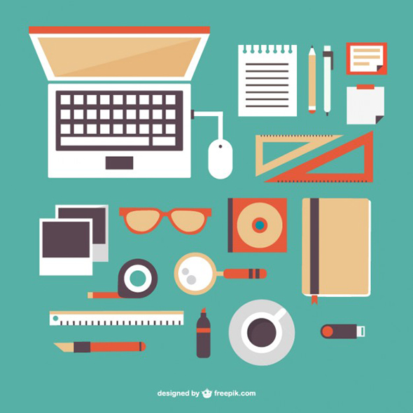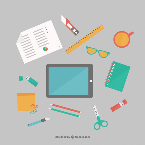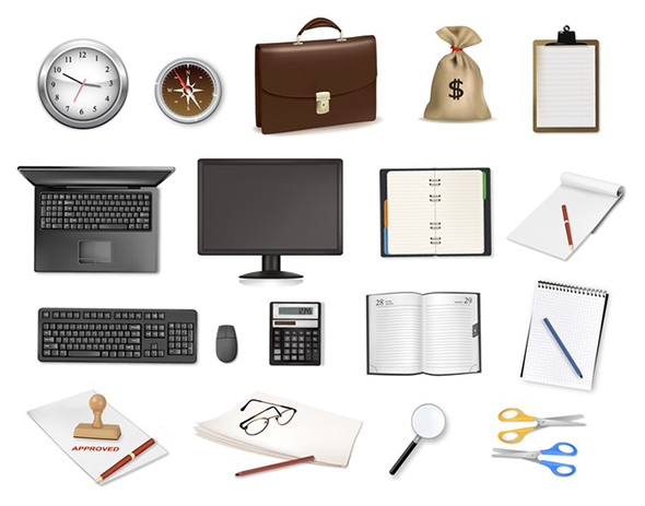 Office supplies flat free vector set
