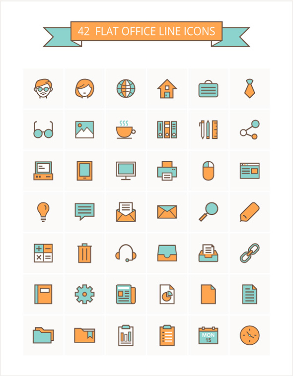 Flat Office Line Icon Set – Download Free Souce Files