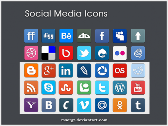 Социальные сети захватили сознание людей и коснулись практически всех сфер жизни. Тяжело представить себе сайт без социальных иконок. Совсем не обязательно создавать иконки с нуля, в Интернете есть большое количество готовых вариантов. Сегодня мы предлагаем вашему вниманию коллекцию наборов иконок, скачать которые можно перейдя по ссылке на первоисточник. Не забывайте читать лицензию.