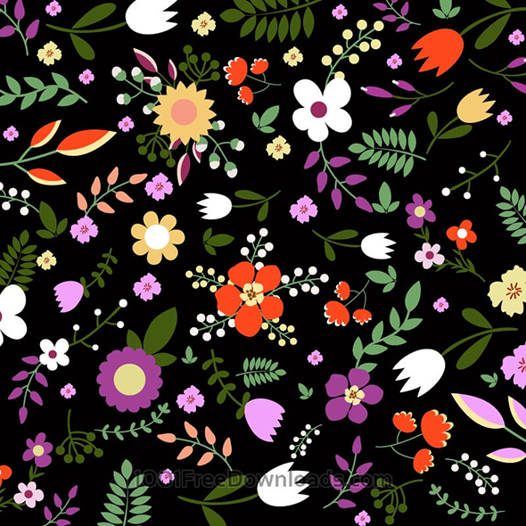 Hand draw seamless floral pattern on black bgackground