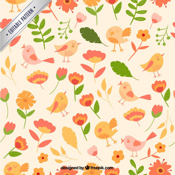 Cute flowers and birds pattern