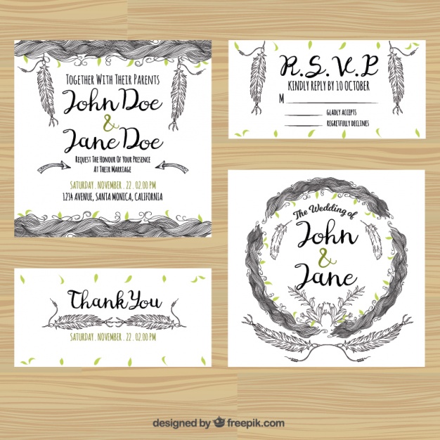 Свадебный дизайн очень важная составляющая торжества. Все должно быть идеально. А начинается свадьба с рассылки приглашений. Мы собрали бесплатные свадебные приглашения, которые можно использовать как основу для создания собственных. Шаблоны выполнены в разных стилях, однако все они интересны. Файлы представлены в векторном формате, что позволяет работать с ними в любом размере.