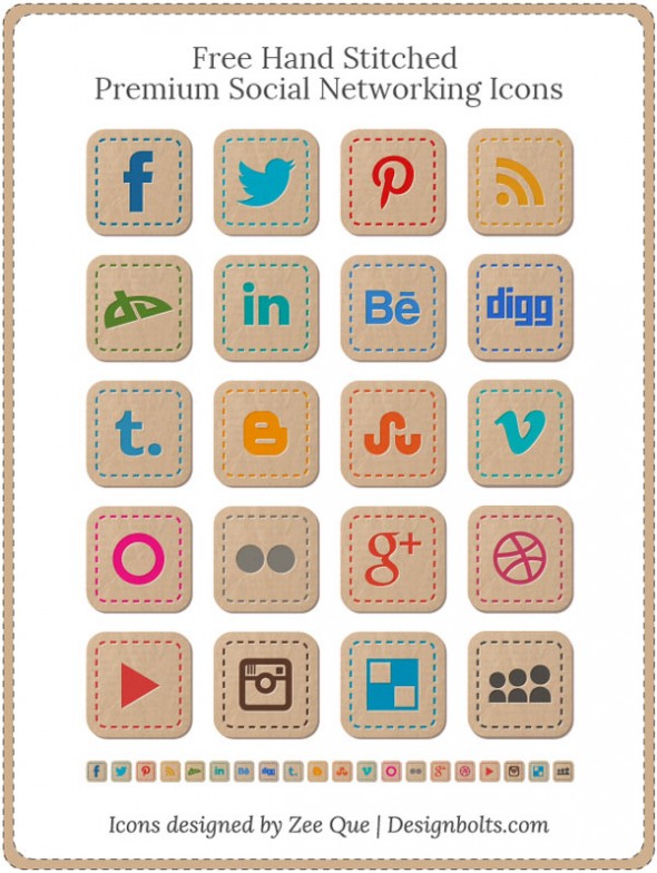 Free Hand Stitched Premium Social Networking Icons