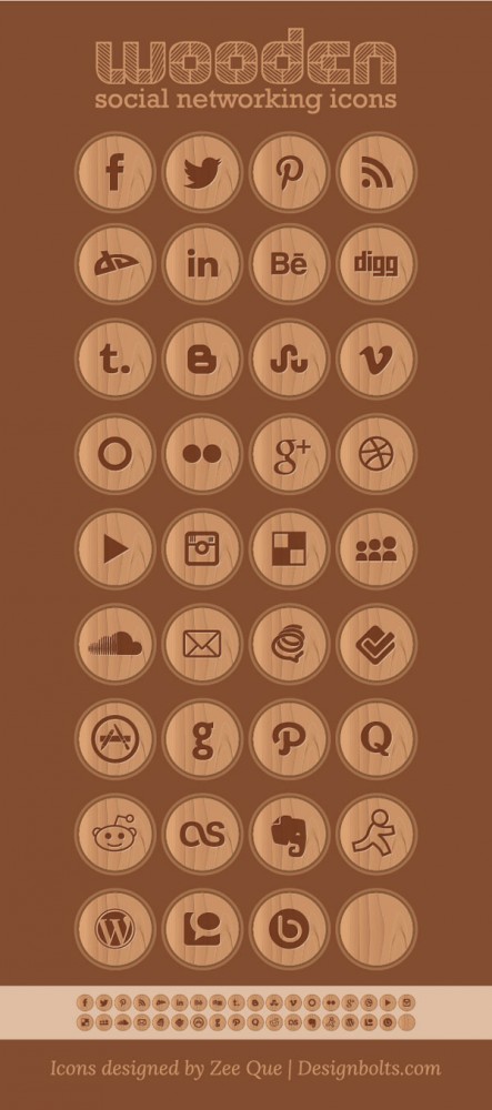 35 Wooden Free Social Networking Icons | 256 PNGs & Vector .ai