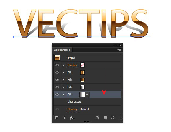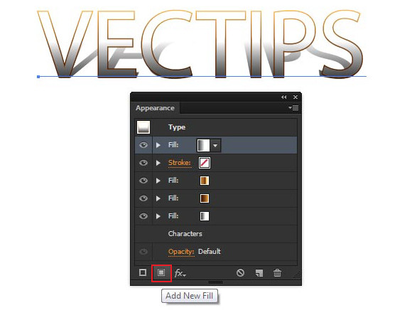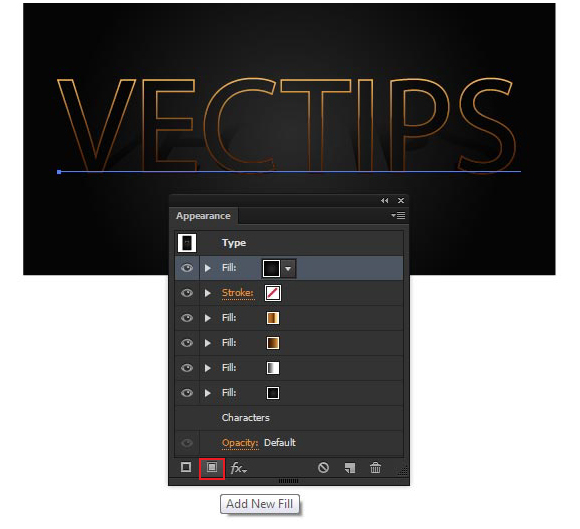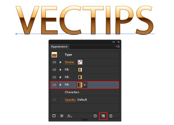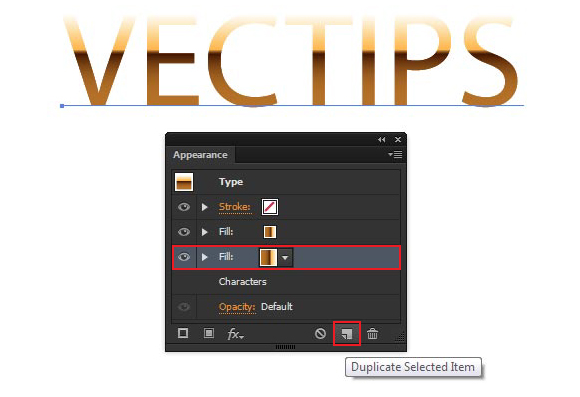 Кликните по иконке Duplicate Selected Item/Дублировать выбранный объект в палитре Appearance/Оформление, затем выберите нижнюю заливку.
