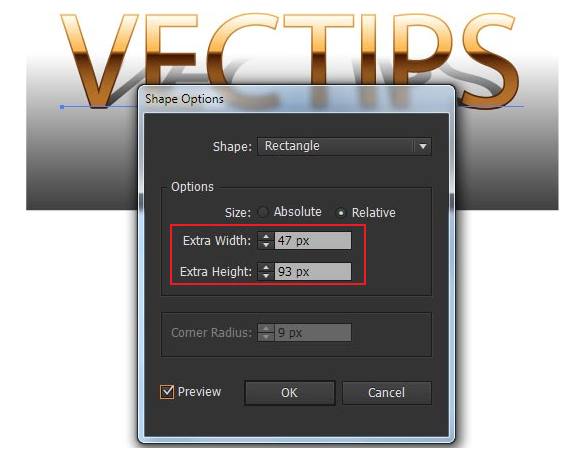 Не снимайте выделения с нижней заливки и в меню выберите Object > Convert to Shape > Rectangle/Объект>Преобразовать в фигуру>Прямоугольник. Настройте параметры как показано на картинке ниже.
