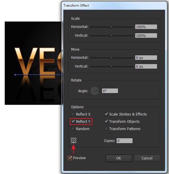 В меню выберите Effect > Distort & Transform > Transform/Эффект>Исказить и трансформировать>Трансформировать. В открывшемся диалоговом окне настройте параметры как показано ниже.