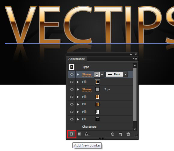 Выделите текст, затем кликните по иконке Add New Stroke/Добавить обводку в палитре Appearance/Оформление.