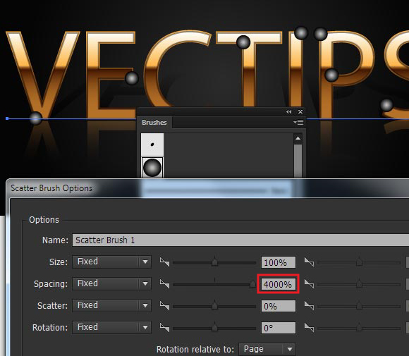 Кликните дважды по иконке этой кисти в палитре Brushes/Кисти, чтобы открыть параметры. Укажите 4000% в поле Spacing/Расстояние и нажмите OK.