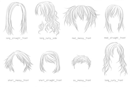 Кисти с готовыми аниме-прическами. Довольно удобно, особенно если приходится рисовать один персонаж несколько раз. По названию кисти сразу можно понять длину прически, ее стиль, проще говоря, «причесанность» и угол поворота головы. Автор набора просит оставлять ссылки на то, где и как вы использовали его кисти. Итак, три набора Lineart Hair Brushes: