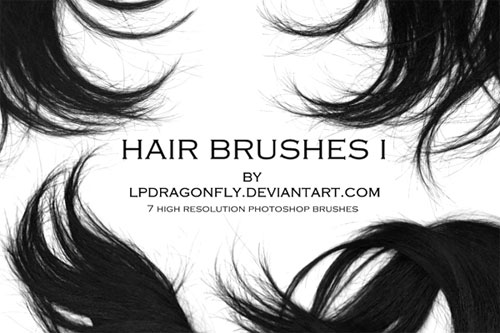 Семь простых кистей для рисования волос вручную, годятся для PS 7 и выше. Довольно удобные и эффективные, ниже — парочка примеров использования этого набора кистей волос.