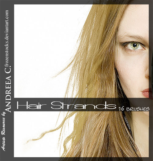 Волосы, развевающиеся на ветру. Набор от dev frozenstocks для членов DeviantArt. В наборе 23 кисти прядок волос, из которых можно соорудить, пожалуй, любую прическу. В случае необходимости коммерческого использования автор просит связаться с ним.