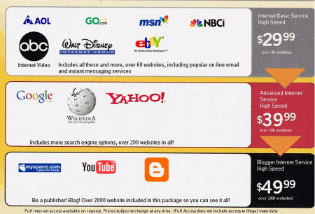 При помощи данной инфографики предполагается показать важность нейтральности в сети Интернет; хотя на самом деле это и не является примером визуализации данных, но она очень быстро доносит главную идею: вот так могло выглядеть наше будущее.