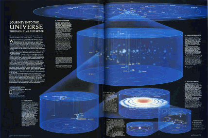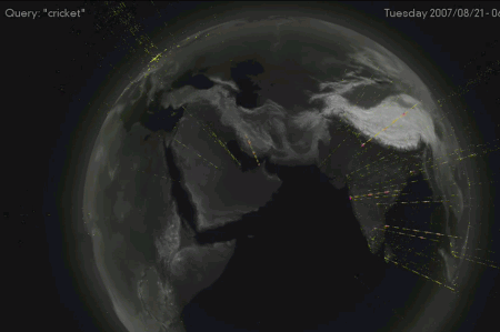 yHaus: BookScape, Query Bursts. Экспериментальные проекты от группы инновационных дизайнерских разработок Yahoo! Такие пакеты запросов (query bursts) отображают отдельные IP адреса, относительно которых идут самые популярные запросы поисковых систем. Каждая частица представляет собой запрос из какого-либо уникального места во всем мире. В свою очередь на “Bookscape” можно увидеть около 250 000 иллюстраций из разных детских книгs, собранных изначально для проекта “Open library”. В экспериментальном интерфейсе используется динамический ресемплинг данных изображения для того, чтобы расположить все рисунки в едином масштабируемом пространстве, с сортировкой по названию.
