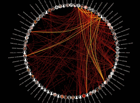 Приложение для визуализации данных, при помощи которого можно отображать взаимоотношения между пользователем и различными людьми посредство анализа полей «От», «Кому» и «Копия» в каждом сообщении из архива электронной почты, состоящего из 60,000 сообщений. Степень взаимоотношений определяется при помощи цветовой насыщенности линии. “My Map” позволяет также исследовать различные группы относительно степени взаимоотношений и периодов времени, раскрывать временные изменения и тенденции в различных взаимоотношениях. Таким образом “My Map” становится достоверным автопортретом, визуальным отображением личных связей и отношений.