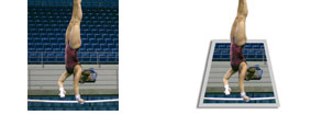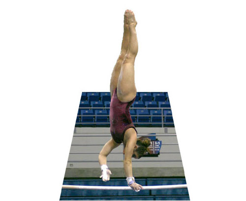 Выберите самый верхний слой, в моем случае это Layer 2. Тот слой, что ниже, можно (но не обязательно) пока сделать невидимым — нажать на глазок в панели слоев слева от слоя Layer 1. Сейчас надо выделить ту часть фотографии, что будет «выскакивать», здесь это будут ноги спортсменки. Выделять я буду с помощью волшебной палочки, вы же можете использовать перо, лассо, кисточку или любой другой удобный вам способ. О способах выделения можно прочесть в статье Selection Tool: мастер-класс по использованию инструментов выделения.