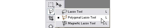 Раз все в порядке, возвращаем видимость среднему слою (Layer 1) — мы его отключали только для того, чтобы увидеть результаты выделения. Сейчас нам надо сделать эффект перспективы на снимке, «уложить» его под нужным углом. Здесь удобно использовать Polygonal Lasso Tool.