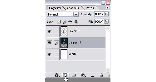 Все, что находится вне выделения, мы скроем маской. Еще раз проверяем, что выбран средний слой (Layer 1) и нажимаем кнопку Add Layer Mask внизу панели слоев. Все лишнее автоматически скрывается под маской.