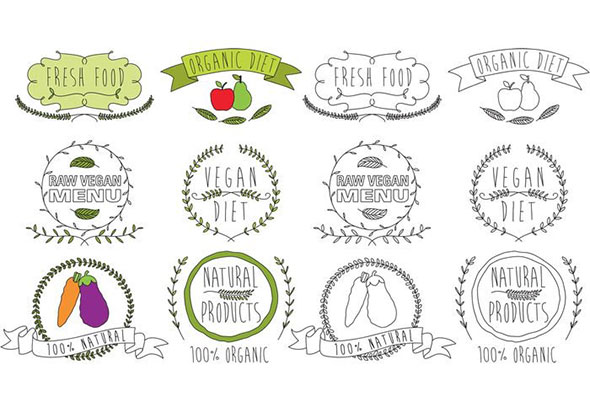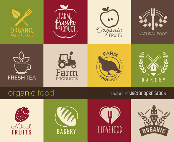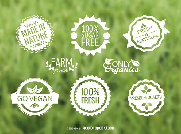 HEALTHY FOOD SIGNS AND BADGES SET