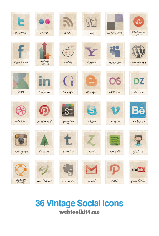 Vintage Social Media Icons 2013 Set For Pretty & Girly Blogs
